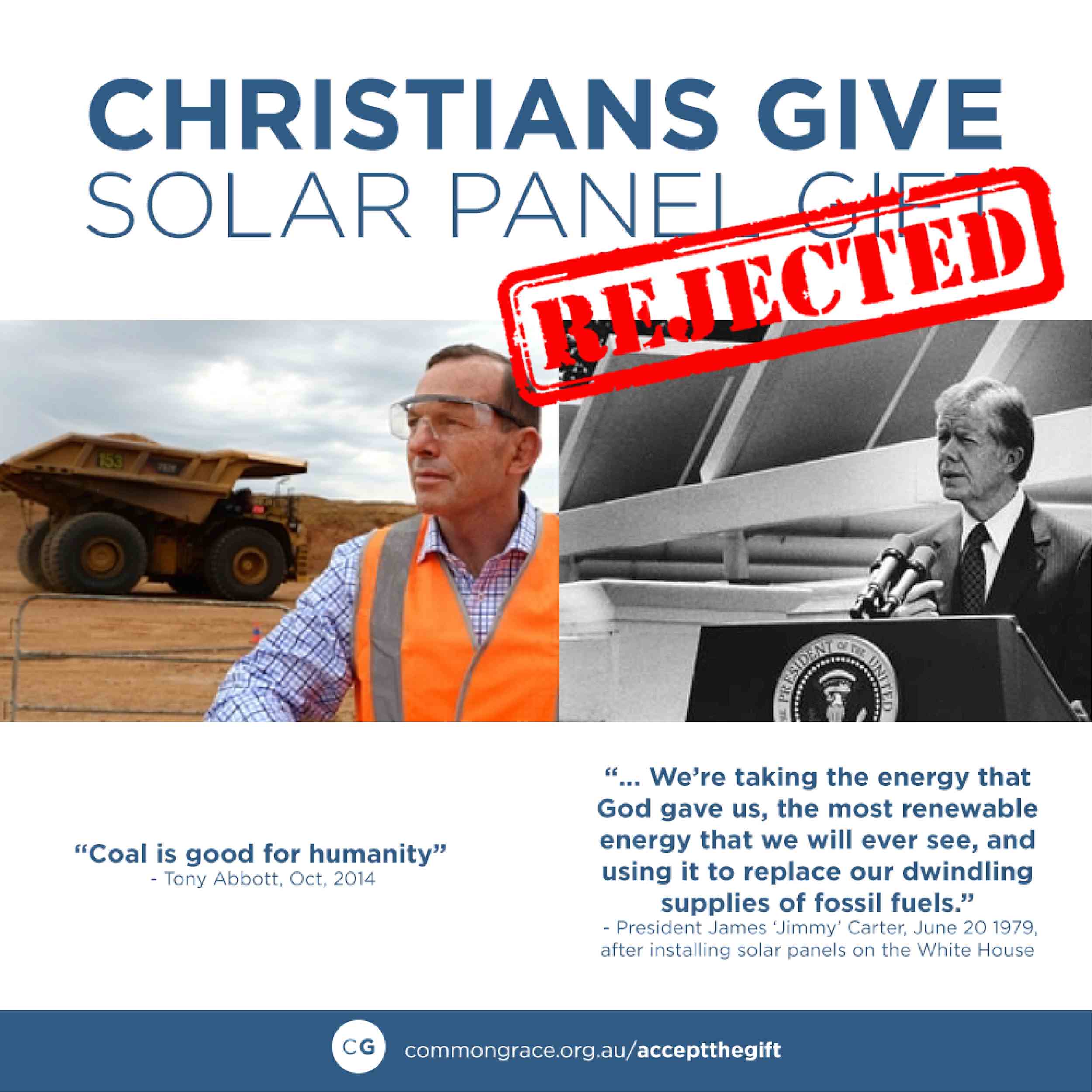 “Australian Prime Minister Tony Abbott has rejected a gift of solar panels offered by a Christian group that ran a crowdfunding campaign late 2014, citing security concerns as a primary reason.”