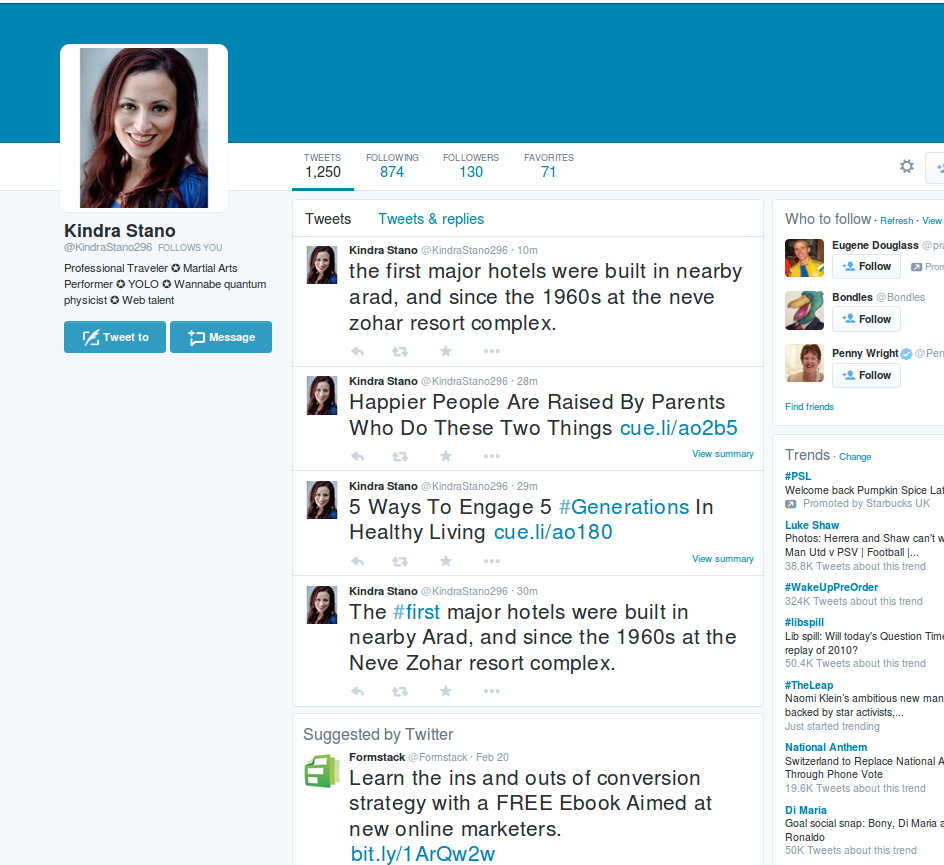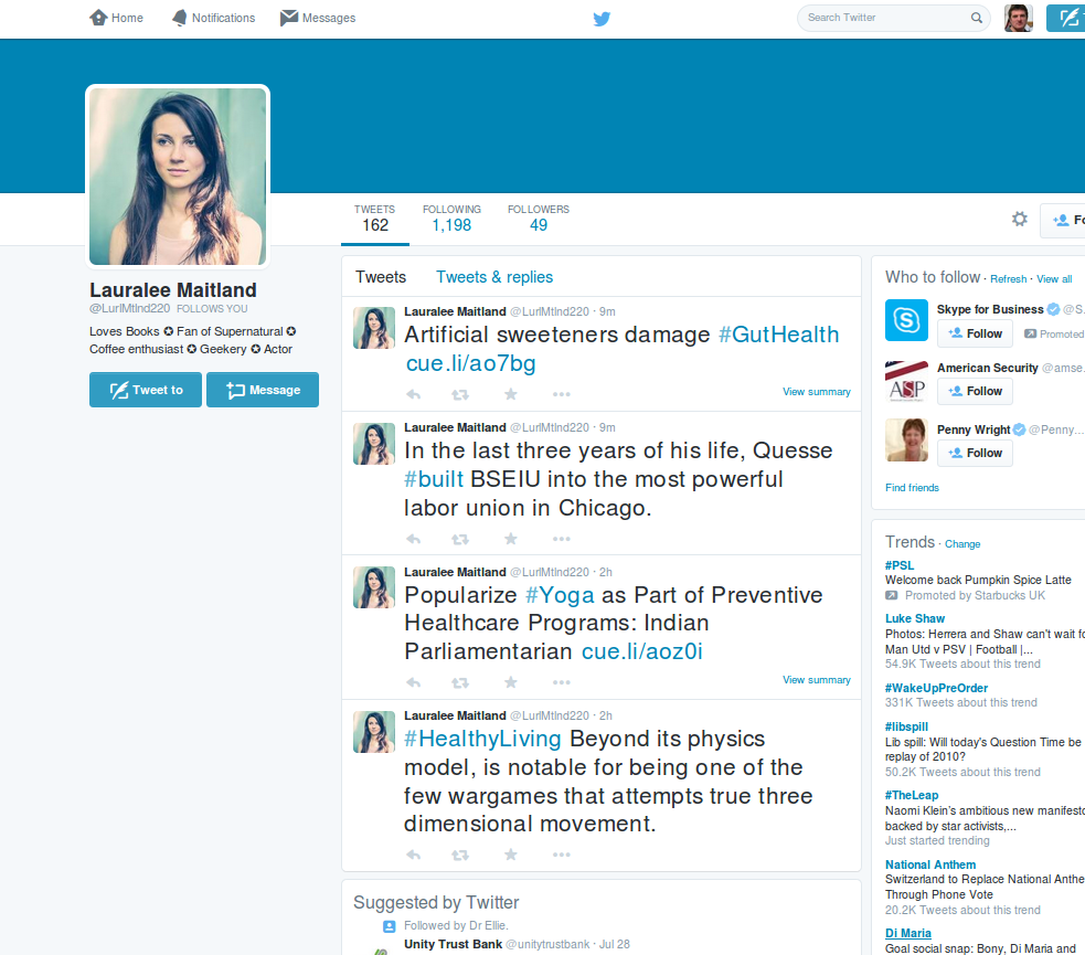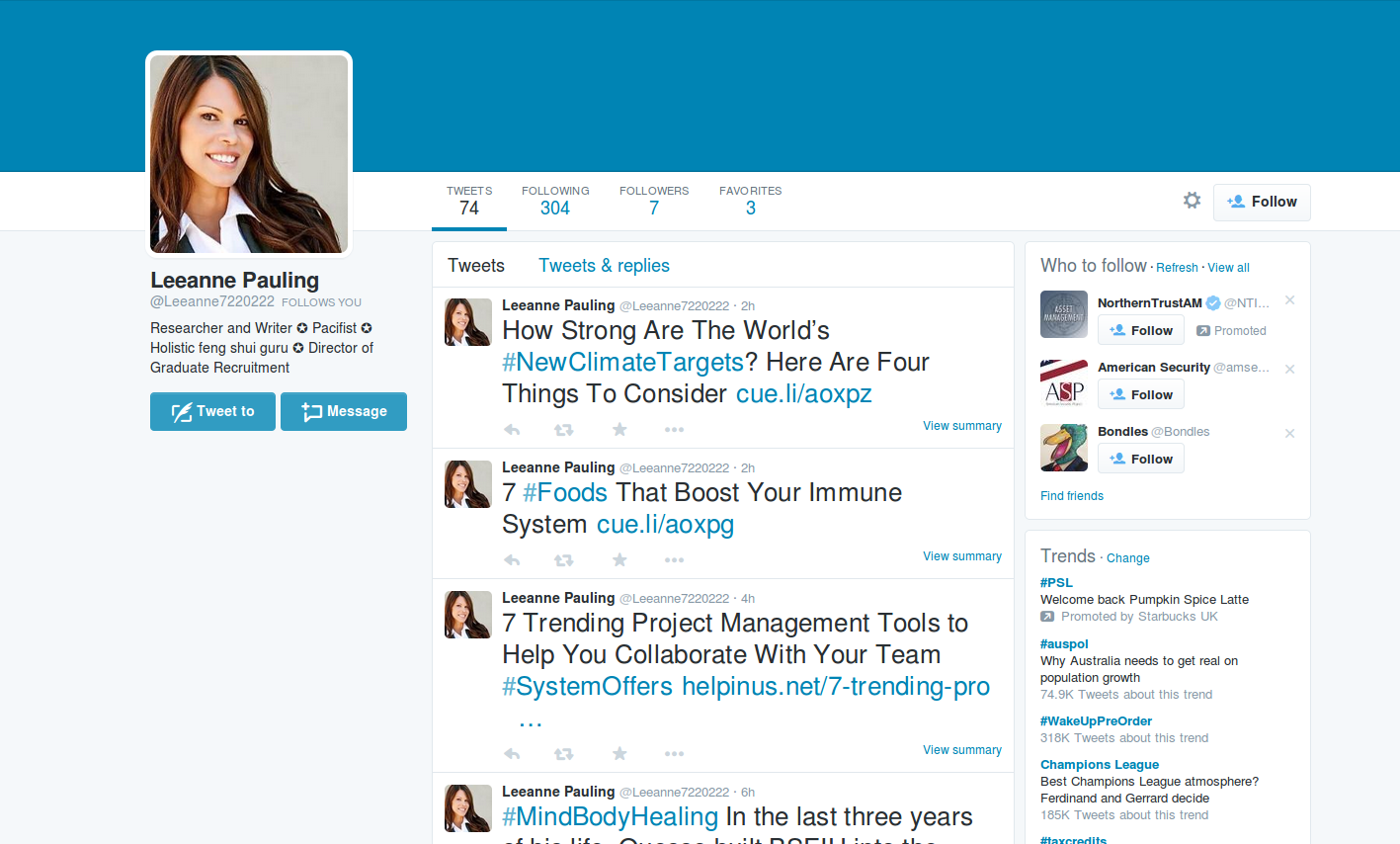 Well, just in the last hour I have had three follows from improbably good looking women who have rather wide interests and tweet a lot of spam. Gee, d’yathink they are bots?!