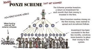In case you don’t know it, a Ponzi scheme is named after an Italian conman, Ponzi. He advertised a glorious future for all who would pay him – steady, high returns on investment. What he did was use the money he was getting to