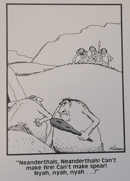 On Neanderthals, two things. There’s that Far Side cartoon