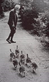 So, anyway, let’s start with the coming of the Big Fish and, to mix an animal metaphor, “imprinting (2).” On a purely instinctual level, when a bird pecks its way out of the shell, the first thing it sees it identifies as its mother. This is known as “imprinting” and the scientist Konrad Lorenz used to get goslings to think he was mother goose.