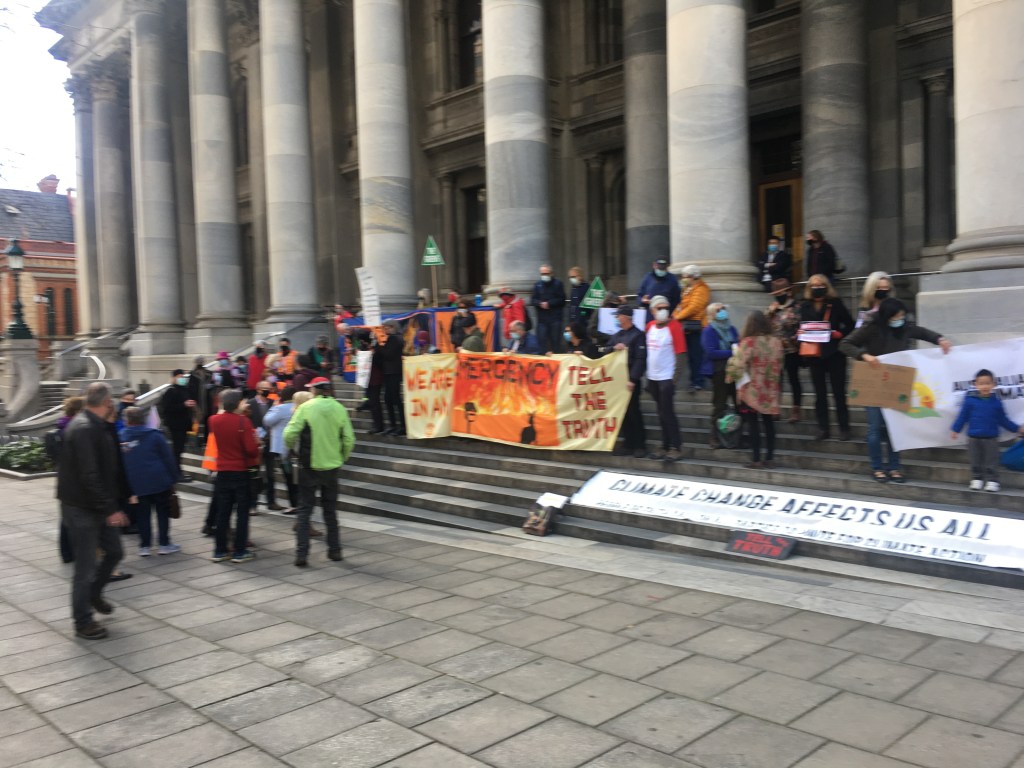 The longer version: Around sixty people, many aged sixty or more, gathered on the steps of the State Parliament of South Australia at 1.30 today. The aim was to give a shot in the arm to the petition (over 10,000 signatures) calling on state politicians to declare a climate emergency. [The year before last I attended a microcosm of this – a seaside council not declaring a climate emergency.]