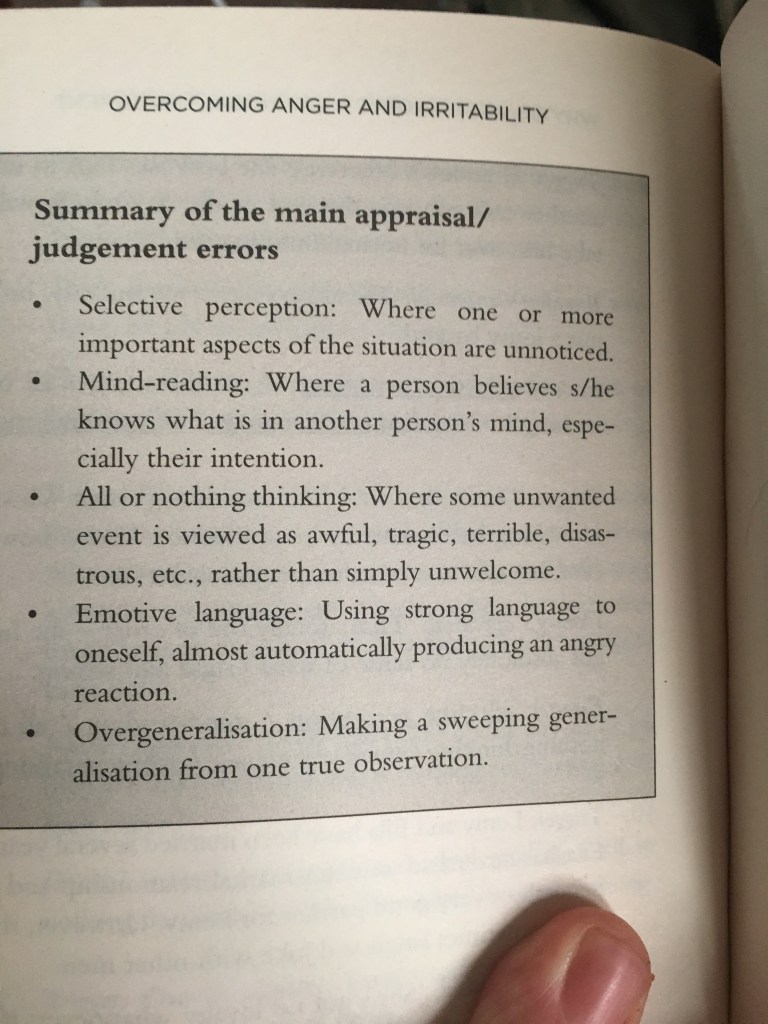 The book, because it is all CBT, makes many good points in a deliberately repetitive way. This bit was good –