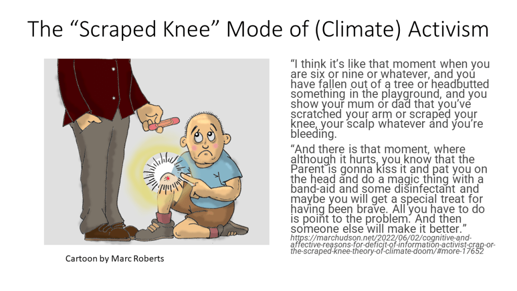 I AM saying that having a theory of change that amounts to little more than asking for a band aid is likely to end badly. How do I know? I’ve been paying attention since the beginning of international climate politics in the late 1980s…