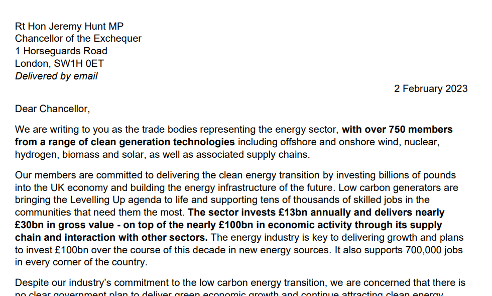 Last week five different trade associations that ‘do’ energy – Renewables UK, Energy UK, Scottish Renewables, Nuclear Industry Association and Solar Energy UK sent a joint letter to Jeremy Hunt. You can read about in in this piece by Sarah George, writing for edie.net.