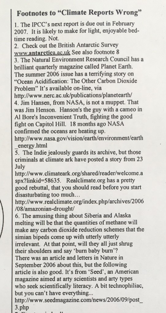 But for now, this bit of it will do – the front page story about how climate change was actually worse than the mainstream models – that it was happening not just faster than the scientists had predicted but, in some cases, faster than they had thought was possible.