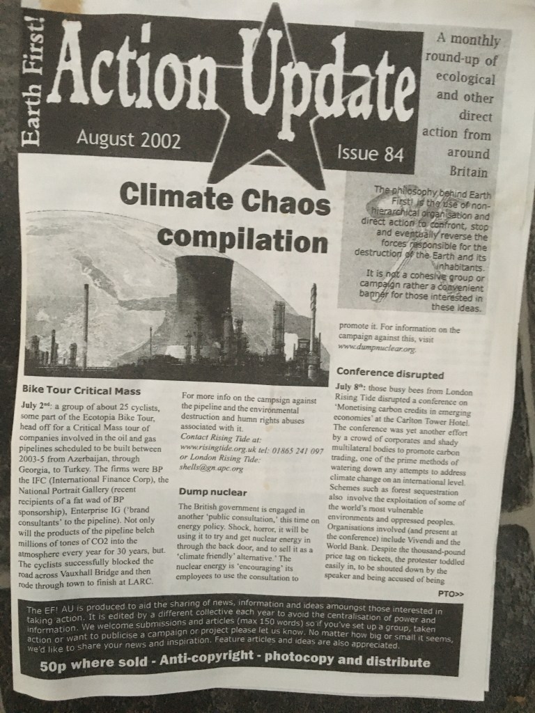 Well, I’ve just stumbled on a copy of an Earth First! Action Update from 2002. Here below are the first two pages.
