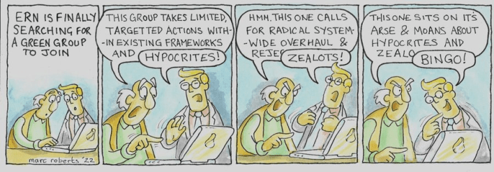 To be clear again – JSO and its daddy, XR, have not that much time for the established NGO. XR people famously hectored Friends of the Earth and Greenpeace for being complicit and inadequate to the scale of the challenge, symbolically ‘occupying’ their offices back in whenever it was (2019, iirc).
