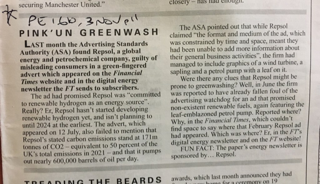 On the FT thing. Yes, the best propaganda doesn’t look like propaganda. The best propaganda is when you get your words said by unimpeachable sources. And so it goes.