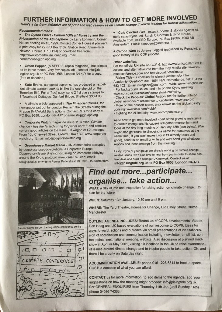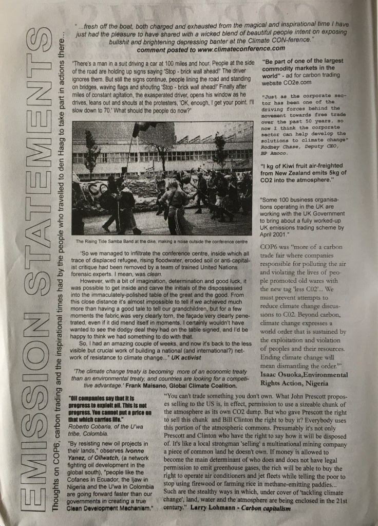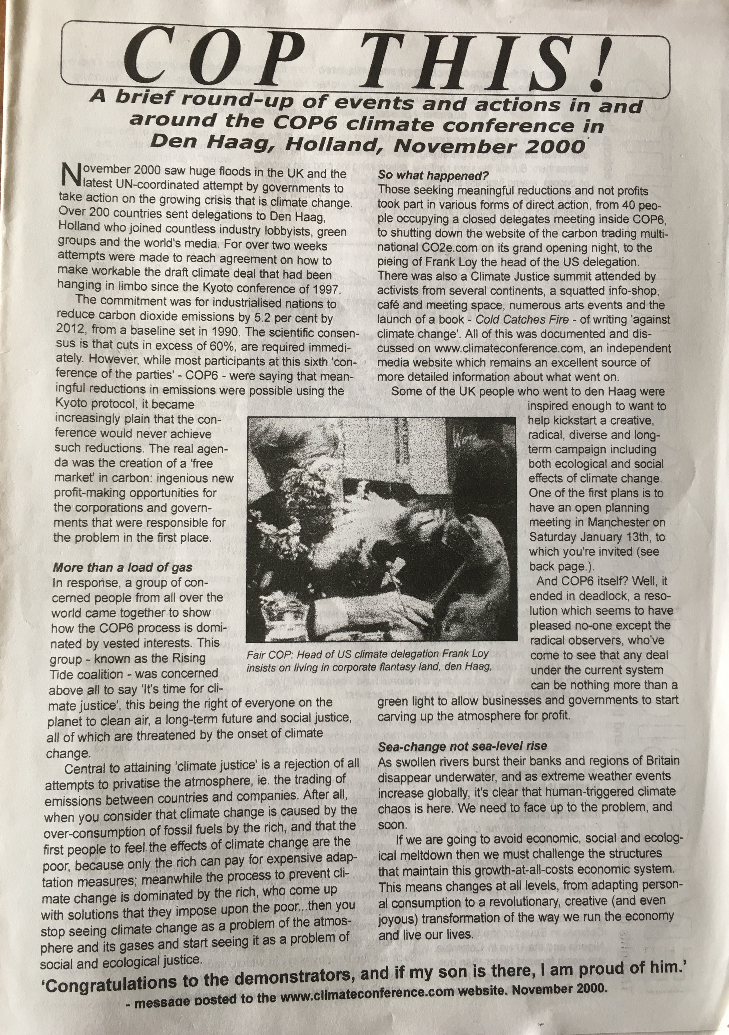 “COP This!” – Climate activist publication from December 2000 abt COP-6 at The Hague Just a nice bit of history, from a generation ago…. Can’t say we didn’t know… Share this: Click to share on X (Opens in new window) X Click to share on Facebook (Opens in new window) Facebook Like Loading... Related Leave a comment Cancel reply Δ