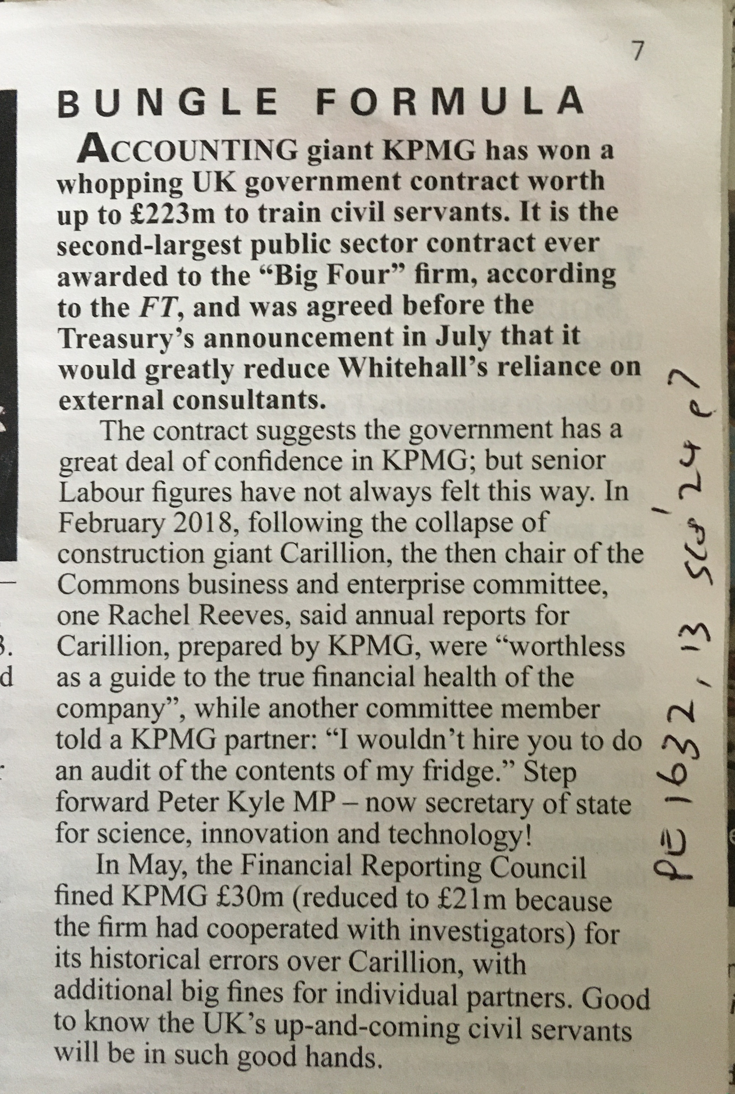 For now, this from the latest issue (1632, September 13) is the first thing I want to big up. It’s in the first news page, i.e. they think it really matters, and it speaks to