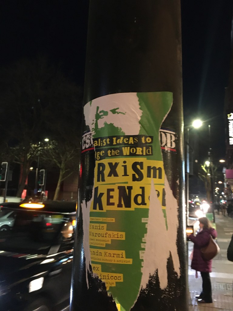 And then as I was trying to cross Euston road, I saw that someone had done a good job of tearing off the “Marxism, 2024 or five” conference poster that some Trots had put up.(1)