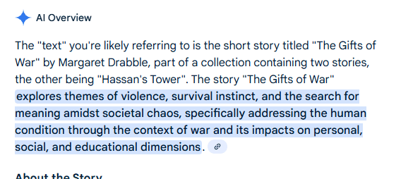 “The Gifts of War” by Margaret Drabble Number 20 of 27 Great British Short Stories