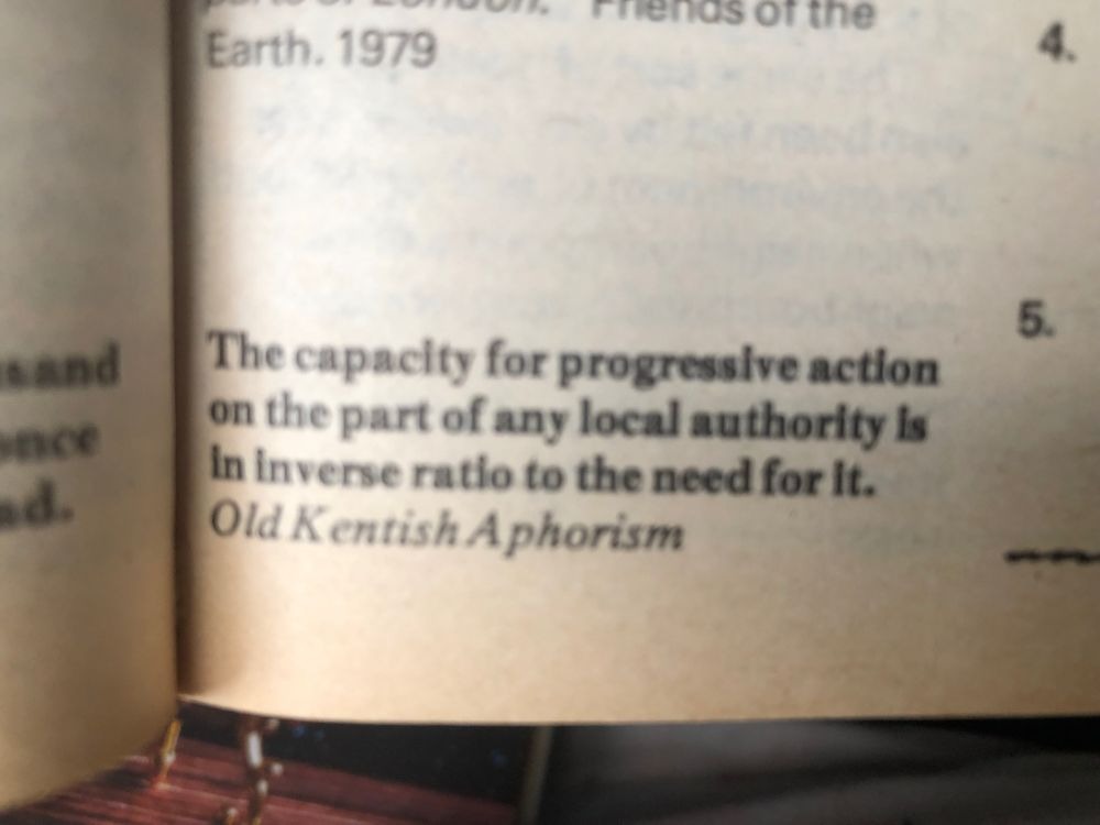 “The capacity for progressive action on the part of any local authority is in inverse ratio to the need for it” Old Kentish aphorism