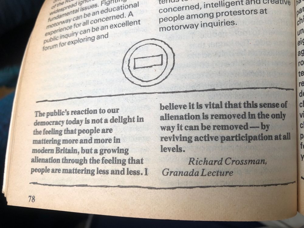 Also need to track down more on John Tyme (anti-Motorway stuff in 1970s), the Crosland “One Man, One Car” nonsense and so on.