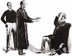 “It was obvious to me that my companion’s mind was now made up about the case, although what his conclusions were was more than I could even dimly imagine. Several times during our homeward journey I endeavoured to sound him upon the point, but he always glided away to some other topic, until at last I gave it over in despair. It was not yet three when we found ourselves in our rooms once more. He hurried to his chamber and was down again in a few minutes dressed as a common loafer. With his collar turned up, his shiny, seedy coat, his red cravat, and his worn boots, he was a perfect sample of the class”