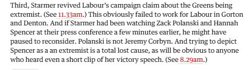 “I think as well he is hampered, psychologically, by some dim (very dim) awareness that the words he used to get the Labour leadership in 2020 are now being spoken by people who actually mean them…