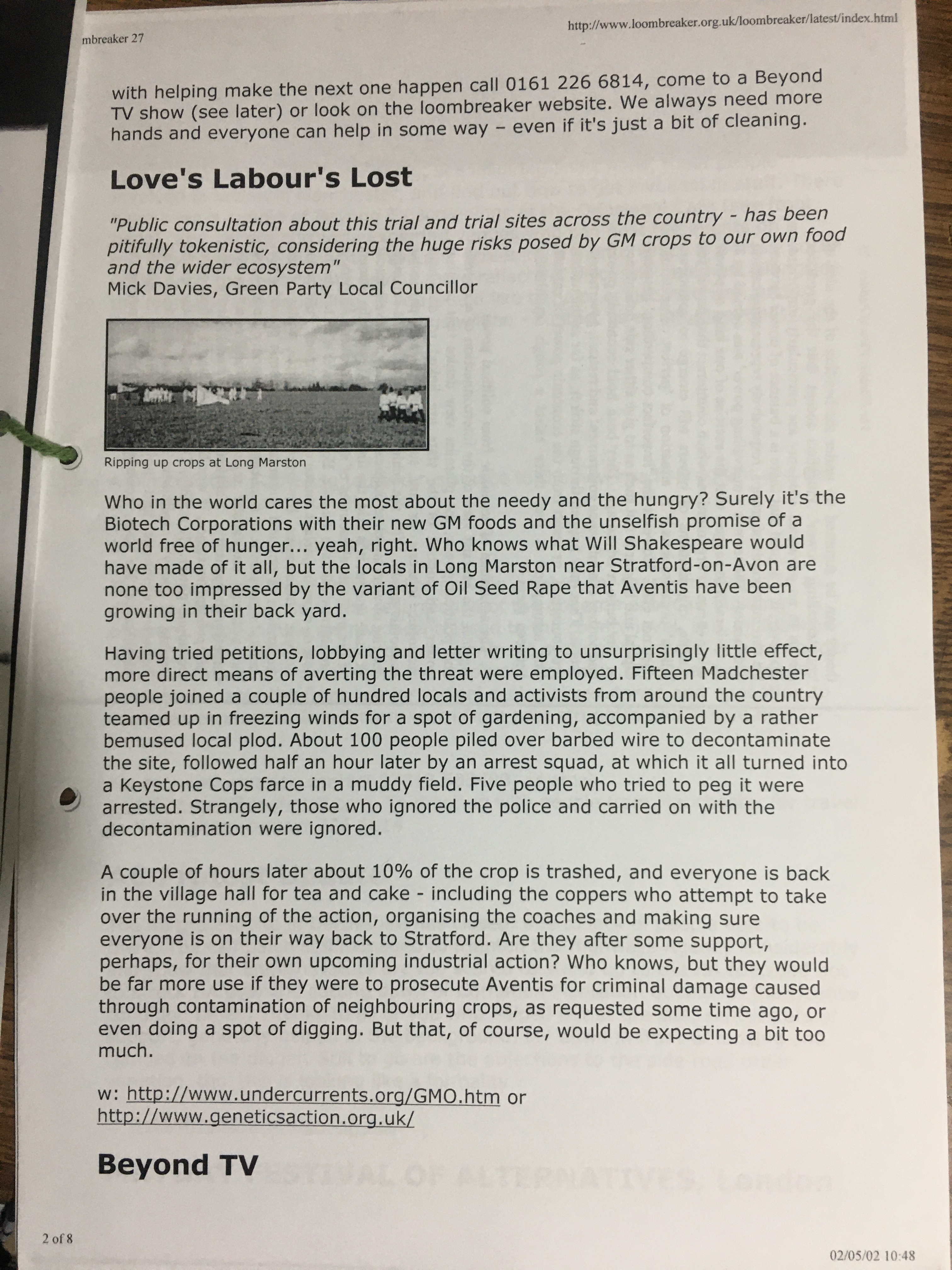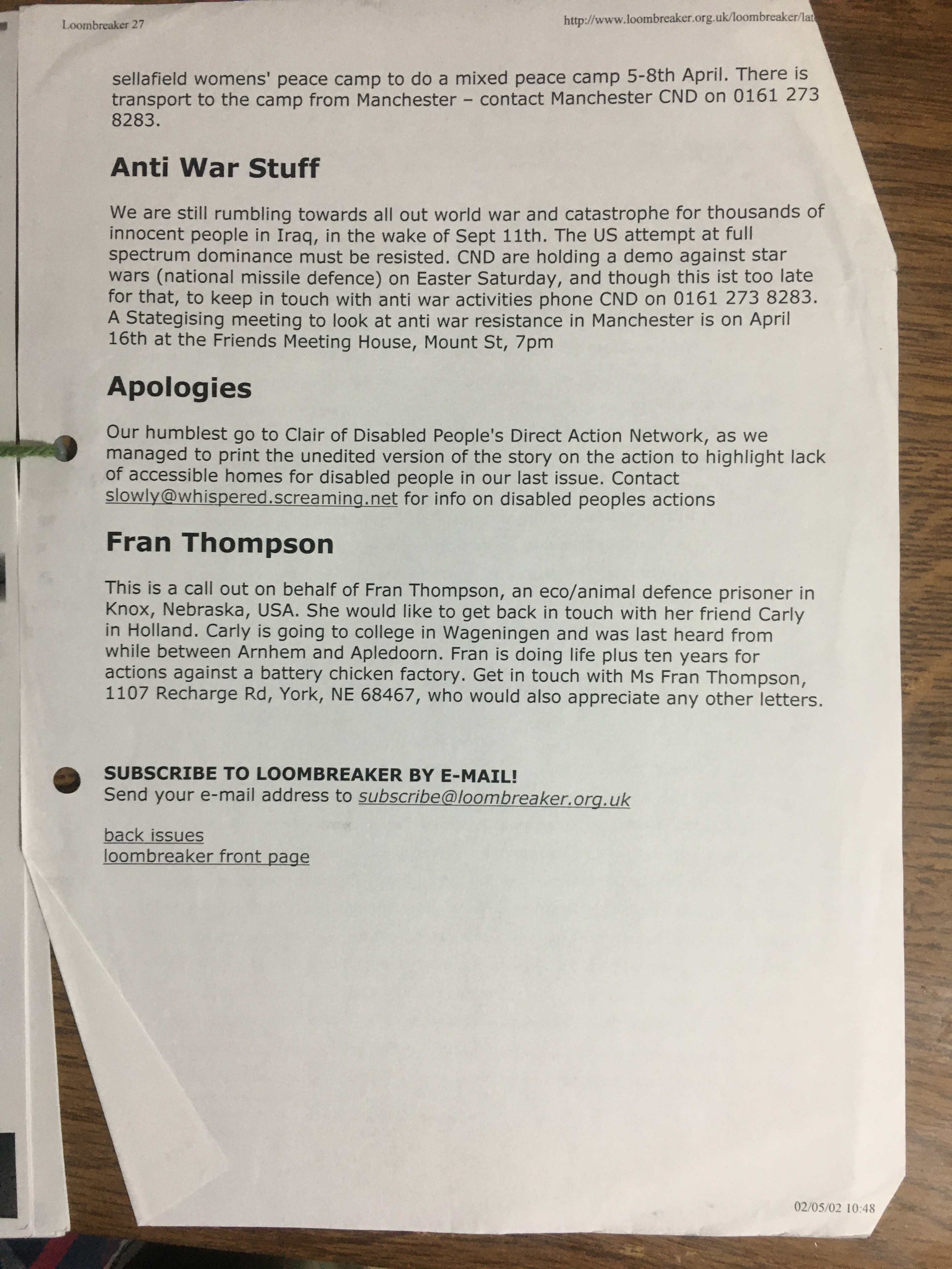 Loombreaker 27 (April 2002) Back to launch page for The Loombreaker. Issue number 27 (April 2002) Share this: Click to share on X (Opens in new window) X Click to share on Facebook (Opens in new window) Facebook Like Loading...