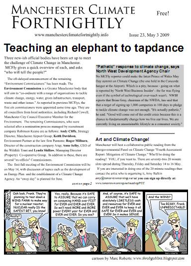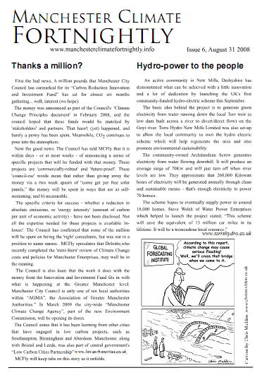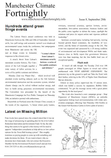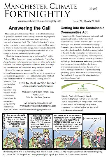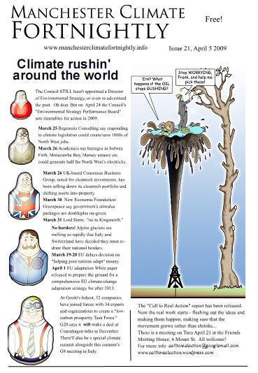 Between 2008 and 2010 there was a publication, edited by me and Arwa Aburawa, with fantastic cartoons by Marc Roberts. It went the clue-is-in-the-name title “Manchester Climate Fortnightly.”