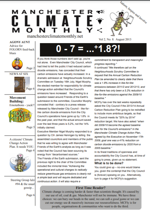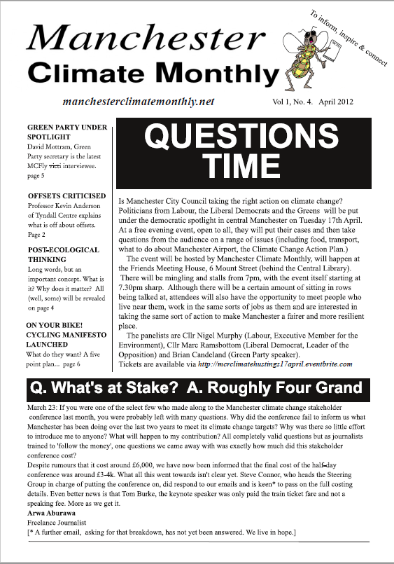 It was a follow-on project from Manchester Climate Fortnightly. It lasted 20 dead-tree-format issues (and is still going as a website). Again, me, Arwa, Marc Roberts and a few other people coming and going. Exposing Council slowness-to-the-point-of-failure, failure-to-the-point-of-unintentional-comedy, and the general half-assed-ness of the activist “community” (which by this time had shrunk markedly – it had already been burning itself out before Copenhagen at the end of 2009…)